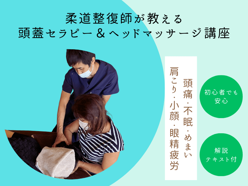 ソフトタッチ手技で髄液循環を良くするクラニオセイクラルセラピーと体重圧を乗せたヘッドマッサージ手技で癒しと深いリラクゼーションへ導く手技を手に入れることが出来ます