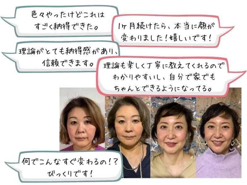 今まで色々やってきたけど変わらなかった方はぜひ来て下さい!YouTube登録者4万人、インスタフォロワー2万人!「色々やったけどこれはすごく納得できた!」「1ヶ月続けたら、本当に顔が変わって嬉しいです!」「理論もしっかりと楽しく教えてくれるので、分かりやすい!」と好評💖始めた人からお顔が変わる、自力整形メソッドをぜひ体験してみて下さい。