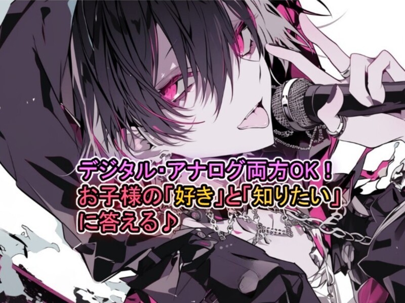 イラストや漫画、アニメ、ゲーム等に興味のあるお子様と、実際に講師の描いている画面をシェアしながら楽しくレッスンします!自信も7歳児のママであり、とてもフレンドリーで「褒めて伸ばして自信を持って頂く」をモットーにしている講師ですので、恥ずかしがりのお子さんも、元気なお子さんも、緊張せずに受けて頂けます✨ レッスン後には「楽しかった!」「自信がついた!」「上手になった!」との沢山の嬉しいお言葉を頂いています。