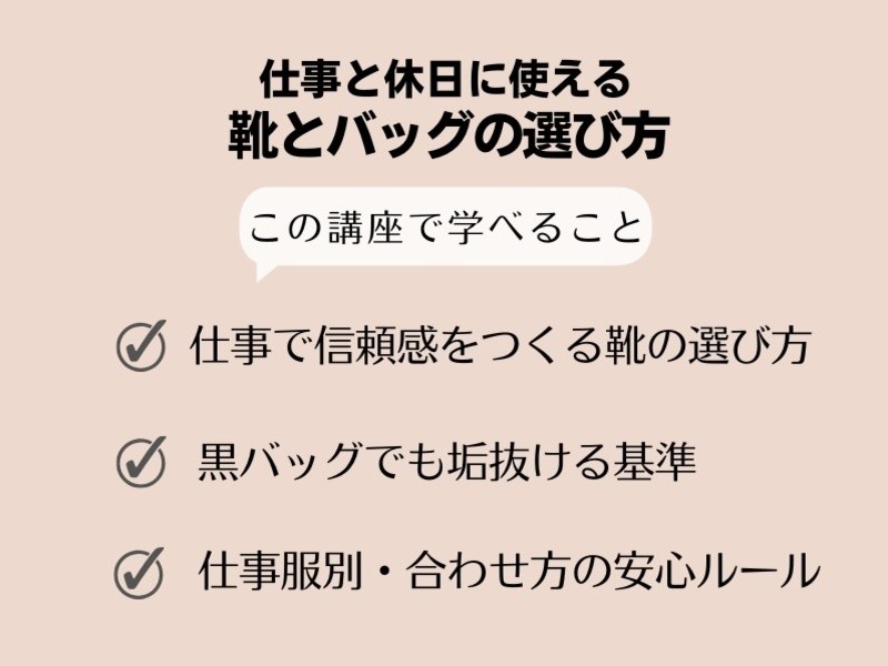 最も大切なことは“仕事服に合う靴とバッグの基準を知ること”です。