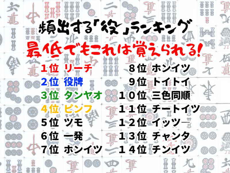 試合によく出る役を優先的に覚えて頂くため、14位までの役はランキング形式で紹介🥇🥈🥉