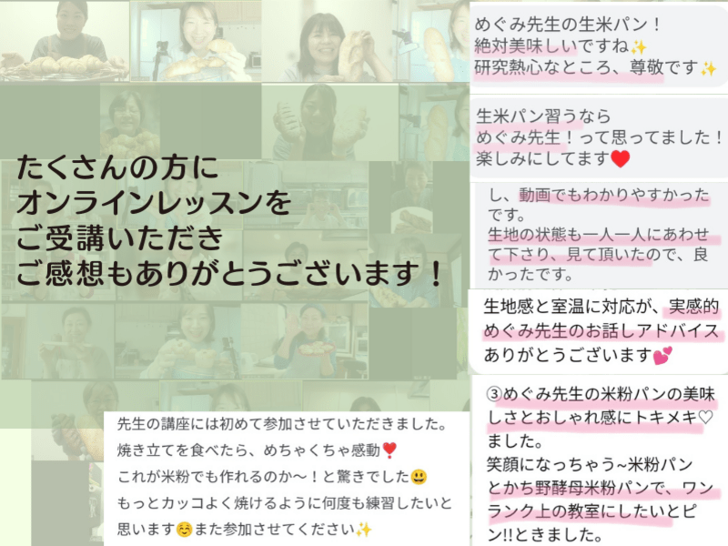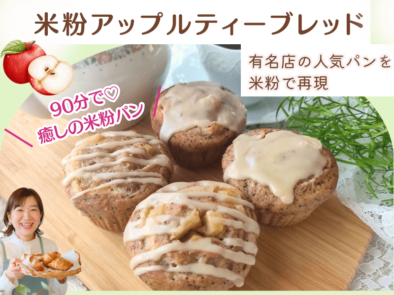 動画受講で作りましたが、米粉パン初心者なのでレシピを頂いた後、紅茶温度や、オーブンの余熱温度や発酵時間の調整の仕方など色々質問しましたが、分かりやすく細かく教えてくださり、焼いてる途中アクシデントがありましたが、無事にアップルティーの香り良くふわふわで美味しいアップルティーブレンドが焼けました。次回は道具をしっかり準備してから、また、焼いてみたいと思います。ありがとうございました。天然酵母のとかちの酵母の代用方法も載っていて、予想外に簡単そうで、とかちの酵母でも作ってみたいと思いました。
