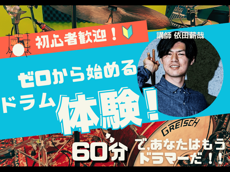 【対面_体験レッスン】【楽器未経験・ドラム初心者の方向け】お好きなジャンルに合わせて、まずはドラムを体験しませんか?