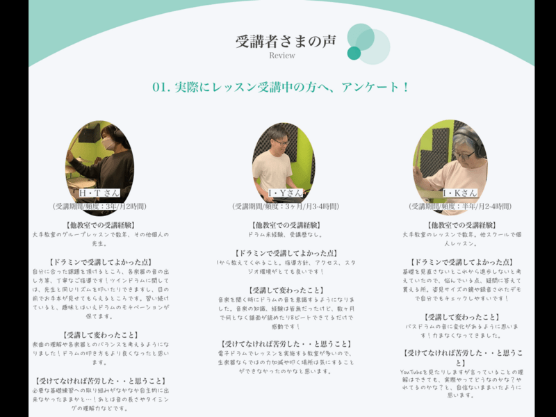 └電子ドラムでレッスンを実施する教室が多いので、生楽器ならではの力加減や叩く場所は気にすることができなかったのかなと思います。