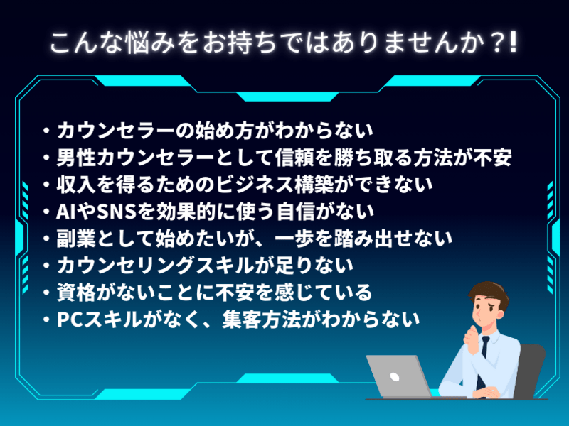タイトルの「スキル0からAIと共に未来へ!🌈男性のためのカウンセラー起業」の趣旨をすべて表現された講座でした。