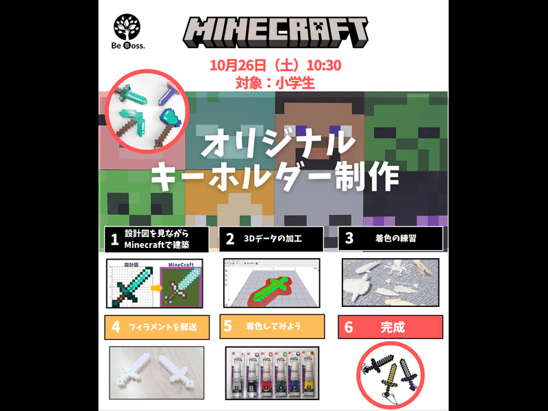 オンラインスクールBe Bossは、「学ぶ」・「稼ぐ」・「買う」・「育つ」の4つの体験ができる未来型オンラインスクールです。ここでは、マイクラ、デジタルアート、動画作成の授業を開催しております。