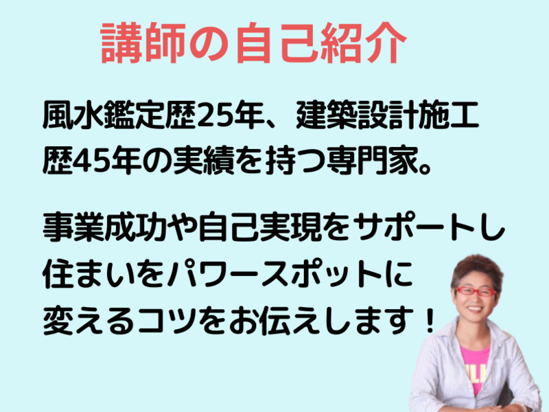 1999年「風水環境科学」を学ぶきっかけとなったのは師匠の松永修岳氏と出会いです。「環境が人の心や健康をつくり、その人の幸不幸や精神性まで深く関係している」ことを知り、カルチャーショックを受けたことが、風水を学ぶきっかけとなりました。両親が離婚して寂しい子供時代を送ってきた私の一番の願いは、目の前にいる小さな子供が安心して笑顔で暮らせる家、夫婦仲良く、親子...