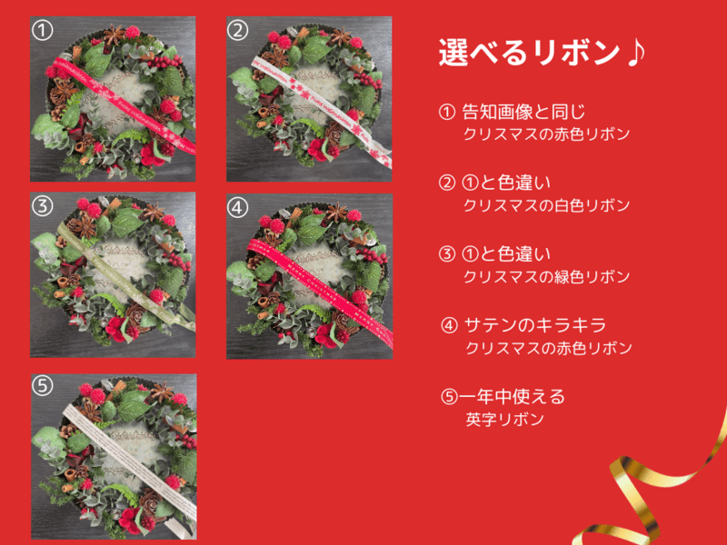 最後のリボンもたくさん種類があり、同じ材料なのにリボンひとつでいろんな感じに仕上がりました。