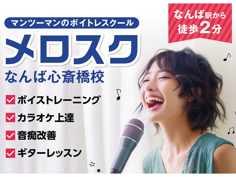 手ぶらでOK【なんば駅から徒歩2分】上達をお約束します!大阪でボイトレなら「メロスク」