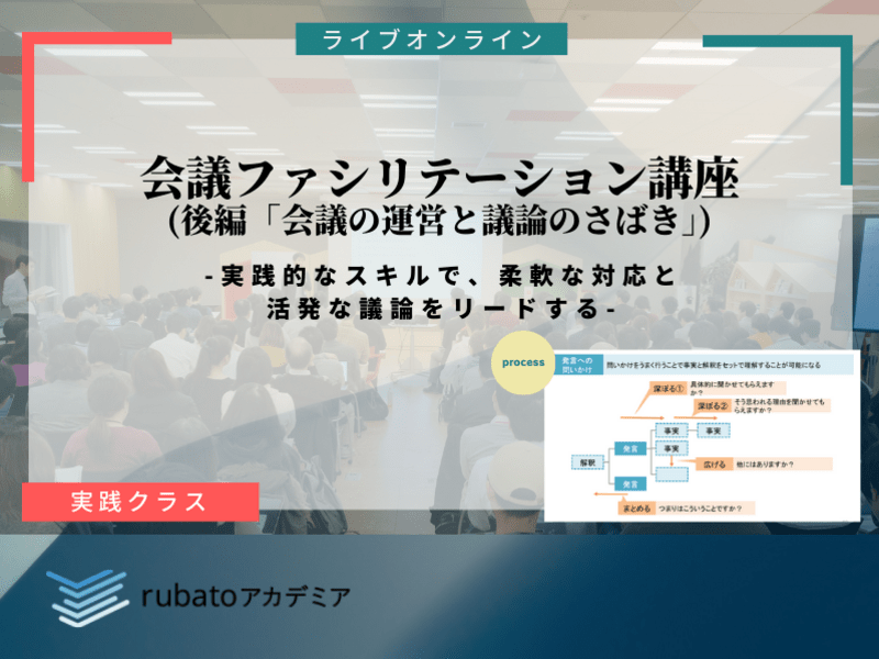 ✓ 複雑な議論を円滑に進行させ、参加者全員の意見を効果的に集約し、結論を導くための実践的スキルを習得する