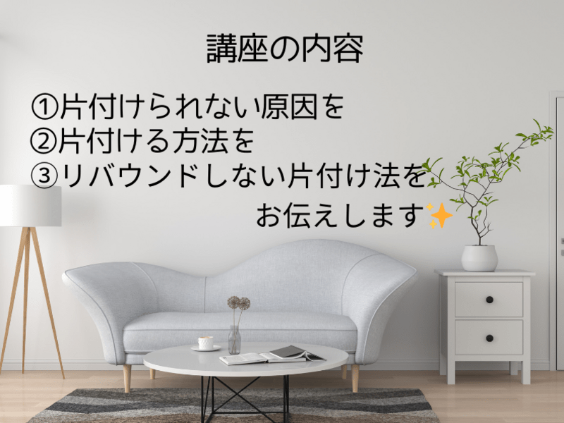 片付かない原因(悩み)を取り除くとともに、部屋も同時に片付いていきます。