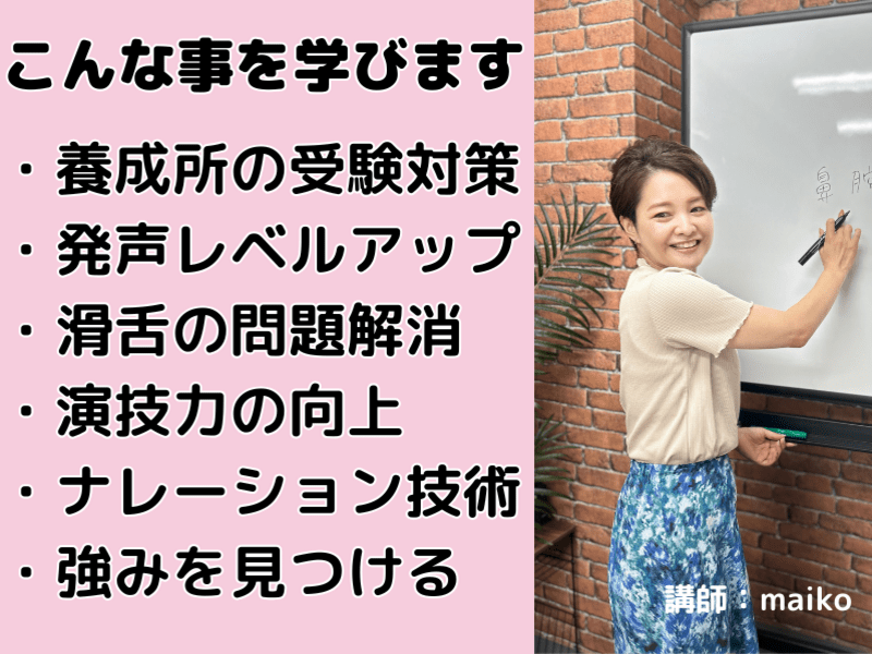 プロの声優・ナレーターを本気で目指す人必見!発声、滑舌、演技やナレーションの技術を5ヶ月間でプロレベルに引き上げるマンツーマンレッスン!!