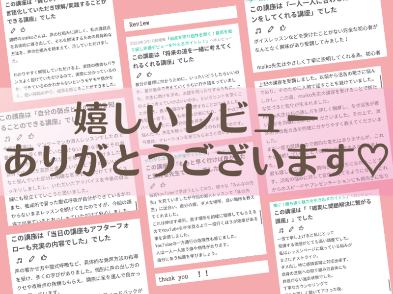アイドル、声優、歌手などのプロからVtuber、趣味で通うおばあちゃんまで幅広い年代、経験の方を指導。
