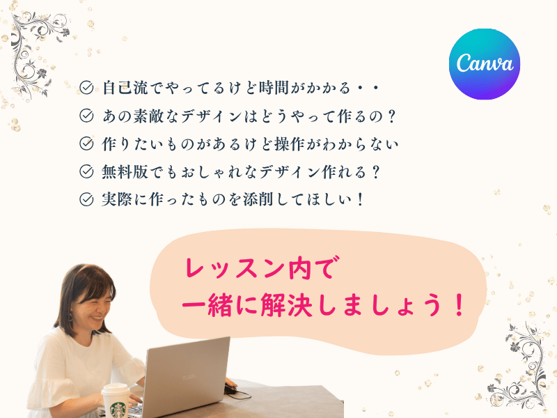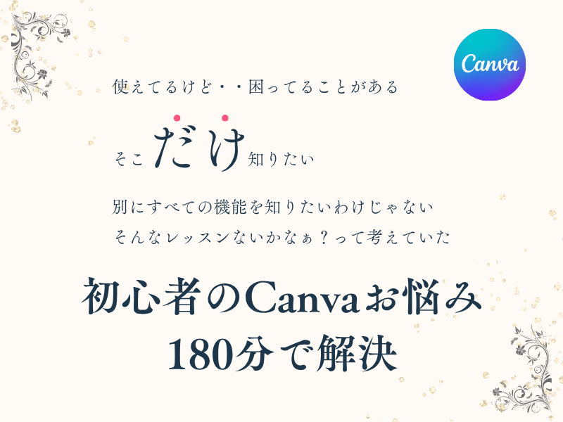 『Canvaを使っているけど、結局わからない…』を解決! マンツー180分+1週間の安心サポートであなたが「知りたいことだけ」を徹底レッスン