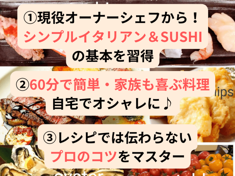 田舎に住んでいて、お洒落なレストランにも行けないので、大人が楽しめる料理を作りたくて受講しました。お寿司は揃えやすい、シンプルな材料で、テクニックを重点的にしっかり教えてくれました。料理本では学べない事だったので受講して大変、満足してます。