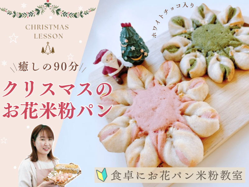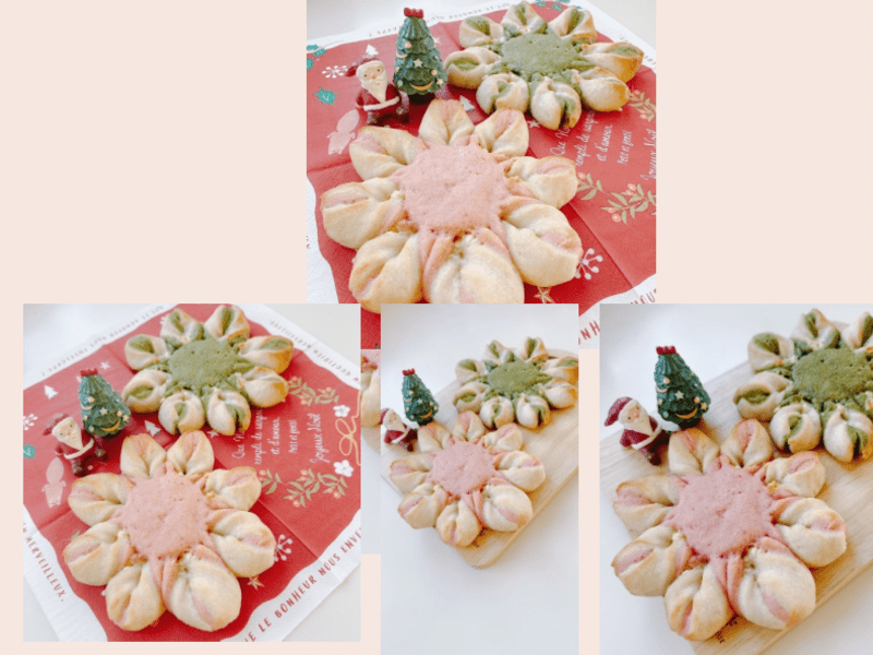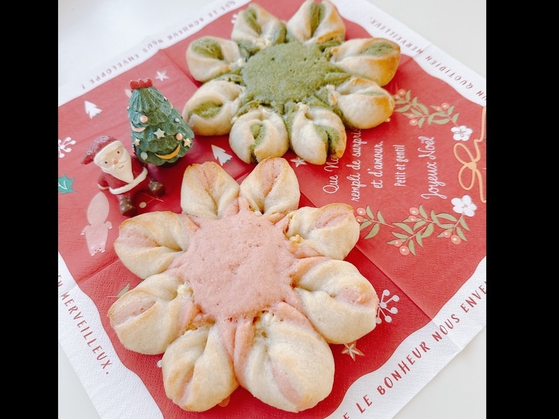 お花米粉パンシリーズはいつも可愛いですが今回は大きい2色の可愛いお花を孫と一緒にオンライン受講しましま。