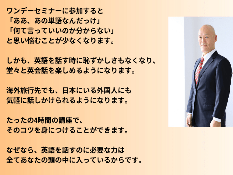 英語が苦手だった人が短時間で話せる魔法のセミナー 中学英語でOK 初心者大歓迎 単語 文法 対面開催