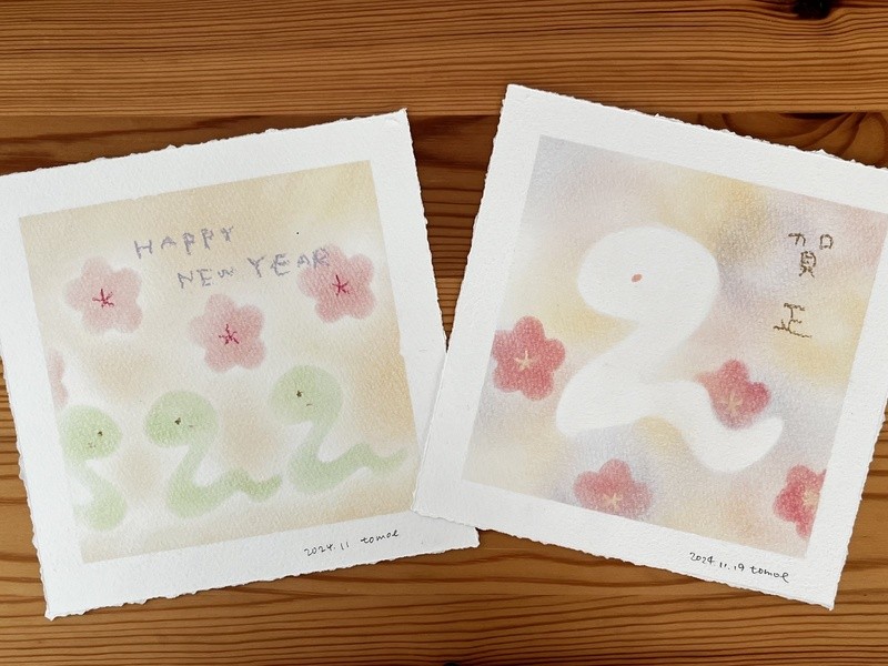 大きなヘビ、小さなヘビ、梅の花。モチーフを組み合わせて自由な創作を楽しみましょう!