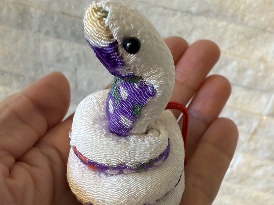金運アップ✨日本人形専門店☆人形のきたむら が行う手工芸教室です。柔らかな和布で可愛い「へび🐍」のストラップを作りましょう!