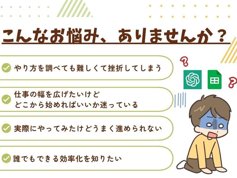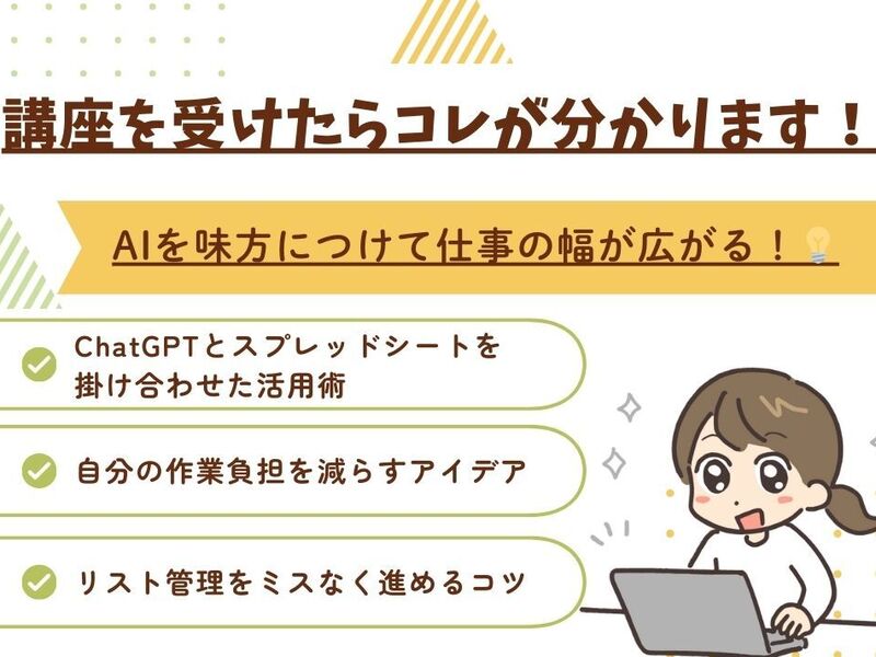 私はChatGPT×スプレッドシートのこの講座で解決の糸口が見つかるとは思っていなかったので、うれしい誤算でした。