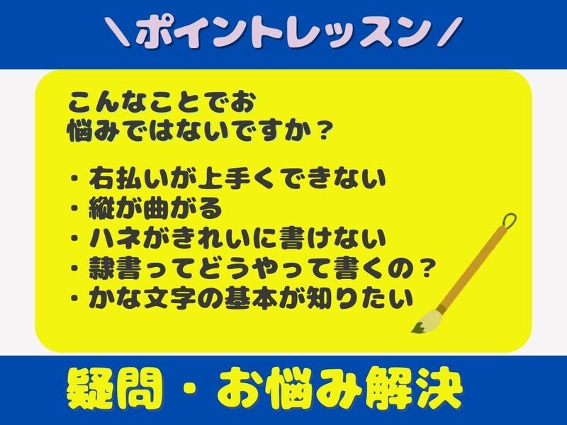 筆の運び方や早さ、筆先の向きなど、分かりやすく説明してくださったので、コツを掴みやすかったです。1時間あっという間でした。ありがとうございました。
