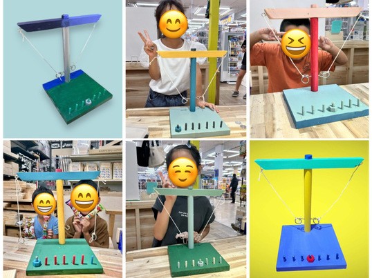 作業内容は上記2番目の動画にあるように電動ドリルドライバーや のこぎり、ペイントにダボ打ち、キリで穴あけをしたり、ヤスリをかけたり、金具をつけたり、と2時間で盛り沢山!