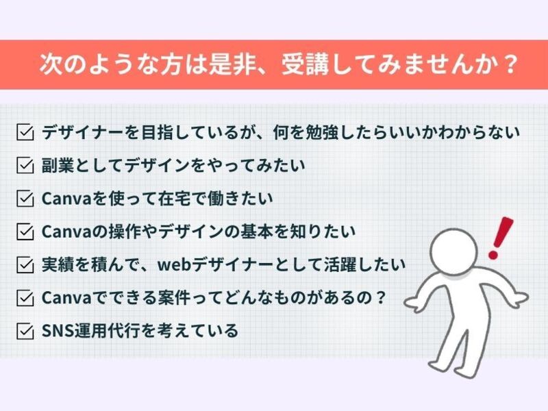 約400名への指導を経験し、誰よりもデザイン初心者の気持ちに寄り添い、一歩を踏み出せない人やうまくいかず悩んでいる人のサポートを生きがいとする。