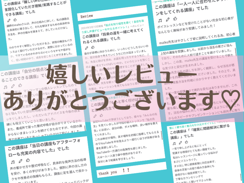 アイドル、声優、歌手などのプロからVtuber、趣味で通うおばあちゃんまで幅広い年代、経験の方を指導。
