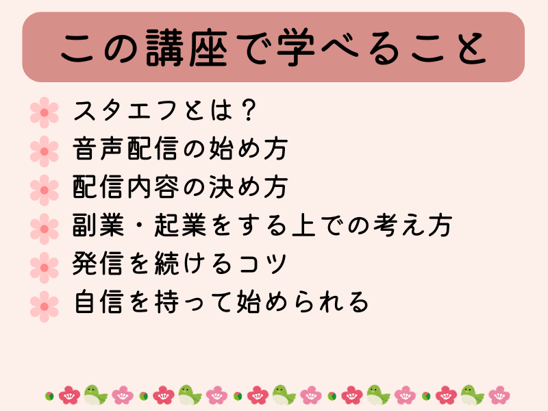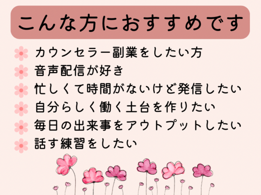 スタンドFMをこれから活用していきたい方に、とてもおすすめの講座です。