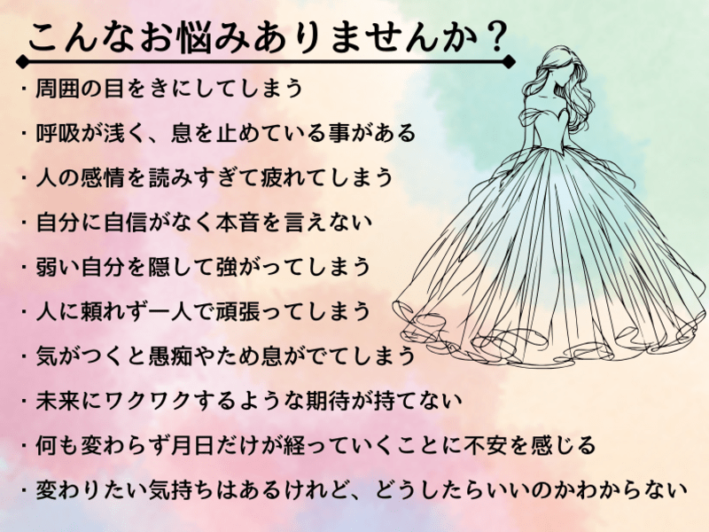 自分が今まで、人任せ、他人軸で生きてきて本当の自分を出せず、ずっと隠してきたことにモヤモヤしていたんだと思います。