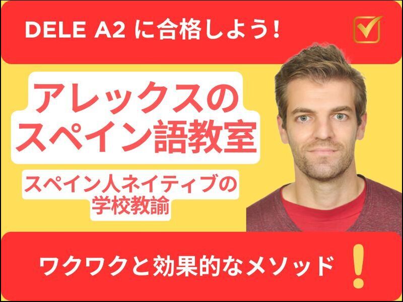 みなさんこんにちは!Soy アレックス・スペイン人ネイティブ講師・日本人女性と国際結婚・日本大好き夏は必ず日本にいます!・スペインでは公立の先生をしています。・趣味はビデオゲーム・2児のパパです。みなさん!一緒に楽しくスペイン語を学びましょう!みなさんにお会いできるのを楽しみにしています。
