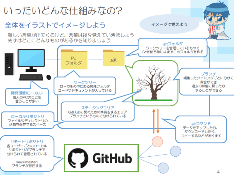 資料をみながら教えていただいた後に、実際にGitHUBを操作するという流れでしたの