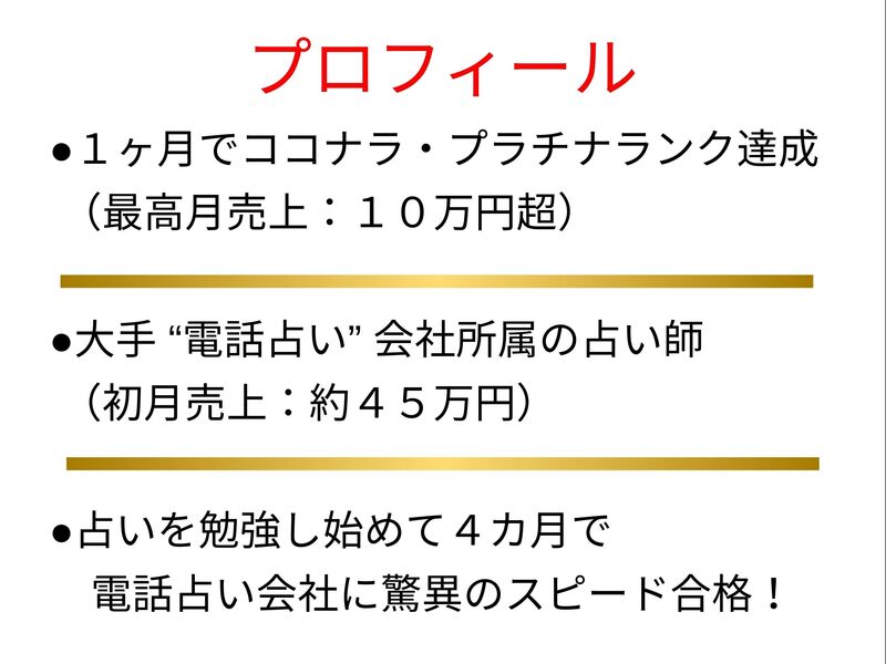 実際に電話占い師をされている先生なので、なるほど!さすが!と思える内容でした。実際に使える言葉や、話の流れなど、そうだったのかと思わされる講座でした。とても話しやすい先生です。またお願いしたいと思います。