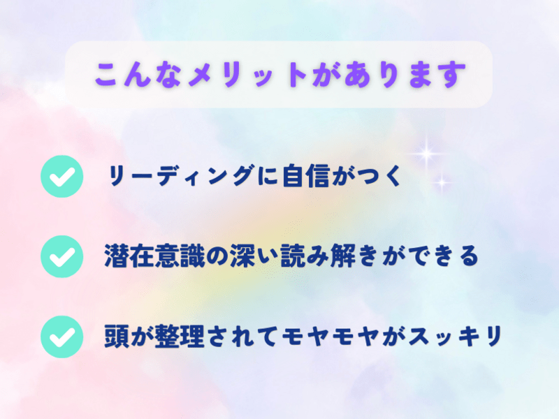 心理学タロット、まさに私に必要な学びでした!タロット1枚にあんなに時間をかけて向き合ったことはなかったです。たくさん言葉が出てきました。これからタロットリーダーに自信を持ってなるために楽しく深く学んでいく勇気をもらいました。ありがとうございました♪