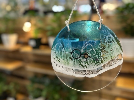丸や四角のアクリルに、塗料やレジンで海を描き、パネルでは味わえない、アクリル板ならではの透明感のある時計をつくりませんか?