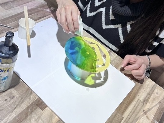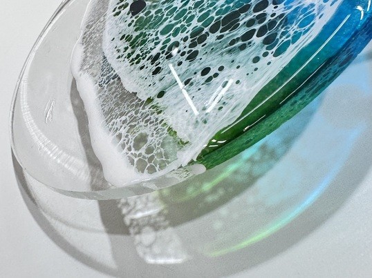 海のグラデーションをスポンジでペイントしたり、レジン1層で波を2本作ったり、新しい手法を教えていただきました。