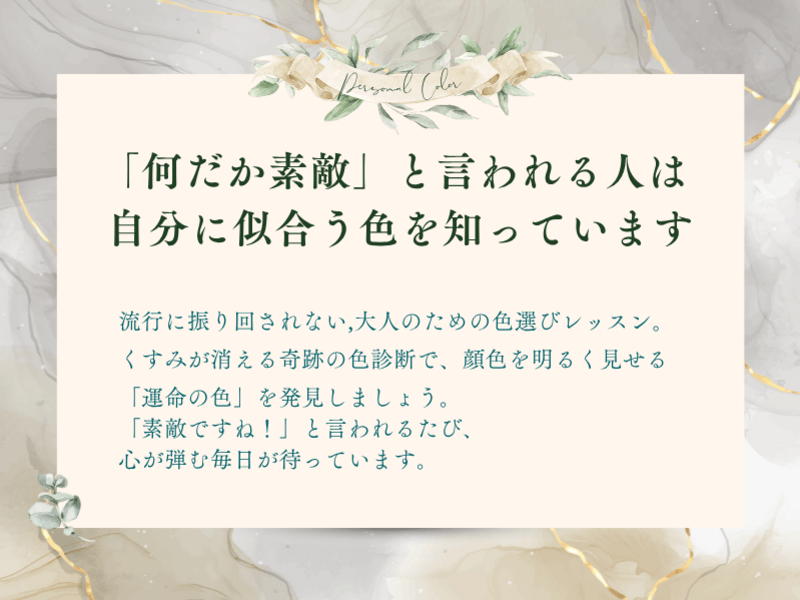 パーソナルカラーや顔タイプ・骨格診断、色彩心理を使って、