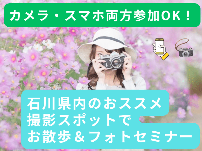 石川県内のその季節におススメの撮影スポットを歩きながら、実践的に写真の撮り方を学びましょう!