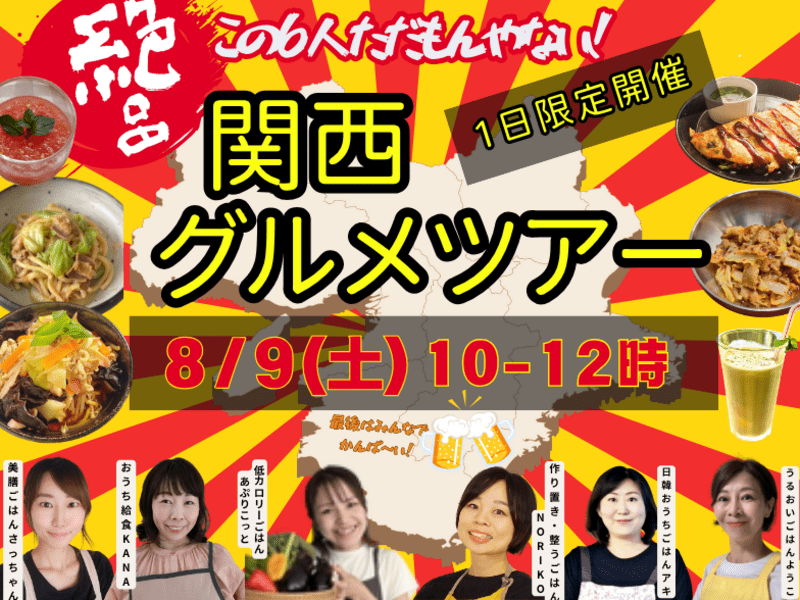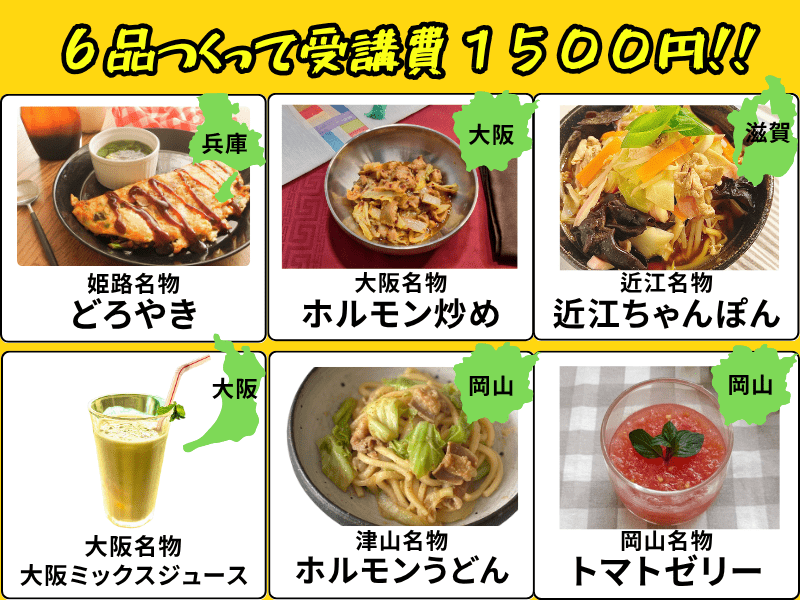 2時間で6品・6人の先生という長時間に果たして消化しきれるのかと心配しましたが、実際に受講してみたら少しの疲れも感じさせない配慮のある料理の時間で驚きでした。料理をただ作って食べるのではなく楽しさや喜びなどを五感で味わえる素晴らしい講座でした。関西のB級グルメは知らないものが多かったですが、その土地で手に入る食材を活かした美味しい料理でした。ようこ先生が突然陽気に歌を歌い出して驚きました。とても盛り上がっていて楽しかったです。このようなグルメツァーがあったら、また是非参加したいです。