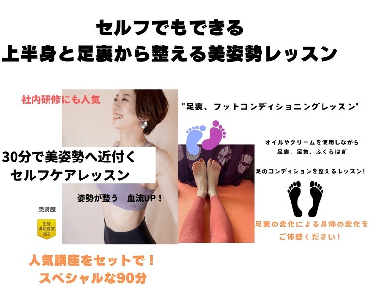 今日は【美姿勢90分】上半身と足裏をセットで整える美姿勢へレッスンを受けさせて頂きました。