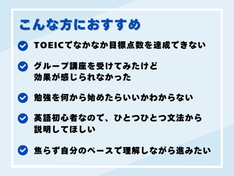皆様の英語に関する疑問を解決し、目標を達成するお手伝いをさせていただきます。