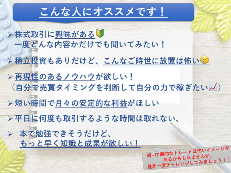 意外と難しくない!ゼロからでも2~3ヶ月で+5~10万円/月稼ぐ、株式トレードの稼ぎ方・収益アップの方法を伝授します!