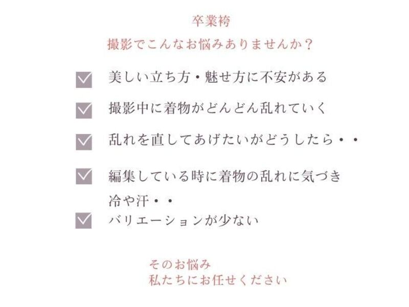 ☑ 卒業袴の依頼が来たとき、内心少し焦っている