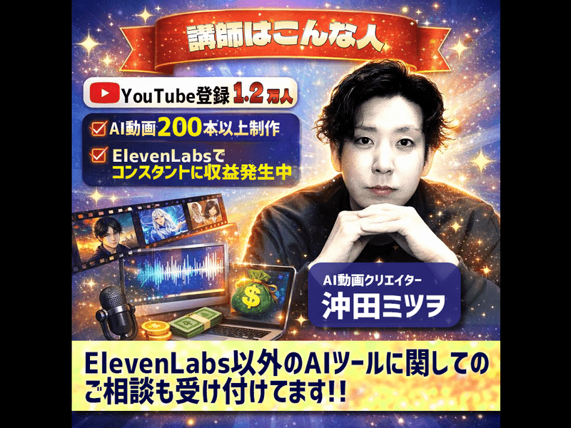 講座終了後にはElevenLabs収益化の助けになるPDFも差し上げます。