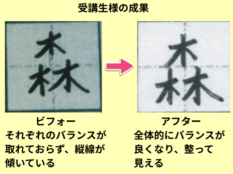 少しのきっかけ、少しの意識で字は変わるんだ、と実感できた60分でした。字を書く時にはふと今日の講義を思い出して、姿勢や、止めはね、バランスなど意識を持って、丁寧に字を書いていきたいなと思いました。ありがとうございました。