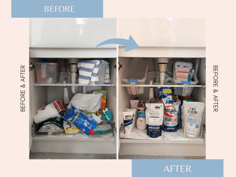 今、収納しているモノを取り出して、ひとつひとつ確認しながら洗面台下に必要なモノを