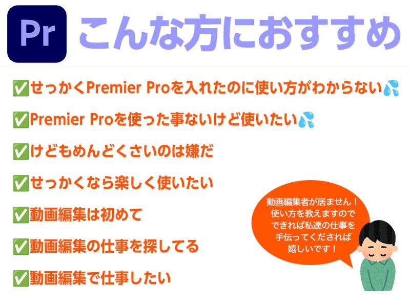 動画が作れる人がいません!PremierProの使い方を教えますので手伝ってもらえませんか?めんどくさがりが教える、時間をかけない動画編集
