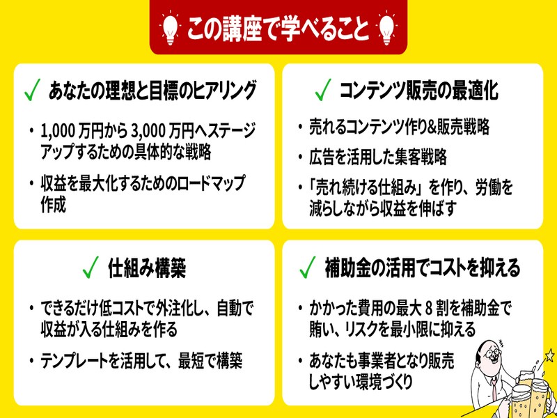 ✔ コンテンツ販売・スクール運営に挑戦したいけど不安