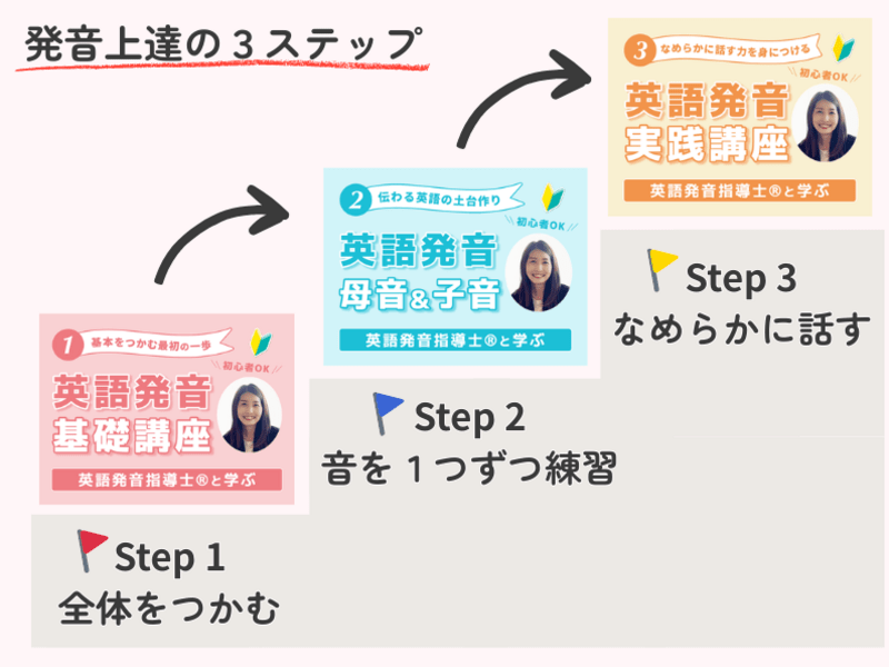 受講後は、ご希望に合わせて以下の流れでさらに発音力を伸ばせます。
