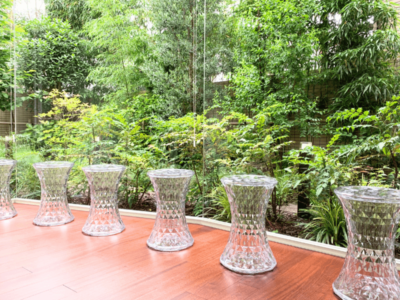 大きな窓から緑を眺め